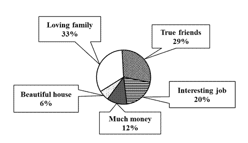 Imagine that you are doing a project on the young Zetlanders’ values. You have found some data on the subject – the results оf a survey (see the pie chart below) .