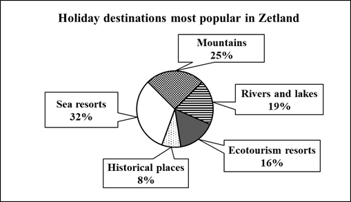 ; Imagine that you are doing a project onwhat career development activities are popular among Zetland young people. You have found some data on the subject – the results of the opinion polls (see the table below) .; Comment on thedata in the tableand give your opinion onthe subject of the project.; ; ; ; ; ; ; ; ; ; ; ; ; ; ; Write200–250 words.; ; Use the following plan:; –make an opening statement on the subject of the project;; –select and report 2–3 facts;; –make 1–2 comparisons where relevant and give your comments;; –outline a problem that can arise with choosing a career and suggest a way of solving it;; –conclude by giving and explaining your opinion on how to find a good job.; ; Imagine that you are doing a project onwhat holiday destinations are most popular in Zetland. You have found some data on the subject –the resultsоf the opinion polls (see the pie chart below) .; Comment on thedata in the pie chart and give your opinion onthe subject of the project.; ; ; ; Write200–250words.; ; Use the following plan:; –make an opening statement on the subject of the project;; –select and report 2–3 facts;; –make 1–2 comparisons where relevant and give your comments;; –outline a problem that can arise with choosing a holiday destination and suggest a way of solving it;; –conclude by giving and explaining your opinion on the best holiday destination.;