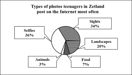 Imagine that you are doing a project on what photos teenagers in Zetland post on the Internet most often. You have found some data on the subject – the results оf the opinion polls (see the pie chart below) .