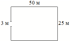 ; Участок земли имеет прямоугольную форму. Стороны прямоугольника равны 25 м и 50 м. Найдите длину забора (в метрах), которым нужно огородить участок, предусмотрев проезд шириной 3 м.;