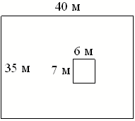; Дачный участок имеет форму прямоугольника, стороны которого равны 35 м и 40 м. Дом, расположенный на участке, на плане также имеетформу прямоугольника, стороны которого равны7 м и 6 м. Найдите площадь оставшейся части участка, не занятой домом. Ответ дайте в квадратных метрах.