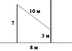 От столба к дому натянут провод длиной 10 м, который закреплён на стене дома на высоте 3 м от земли (см. рисунок). Найдите высоту столба, если расстояние от дома до столба равно 8 м. Ответ дайте в метрах.; ; ;