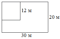 ; Дачный участок имеет форму прямоугольникасо сторонами 30 метров и 20 метров. Хозяин отгородил на участке квадратный вольерсо стороной 12 метров (см. рис.). Найдите площадь оставшейся части участка. Ответ дайте в квадратных метрах.;
