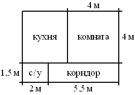 ; Квартира состоит из комнаты, кухни, коридора и санузла (см. чертёж). Комнатаимеет размеры4м×4м, санузел—1,5м×2м,длина коридора 5,5м. Найдите площадь кухни (в квадратных метрах).; ; ;