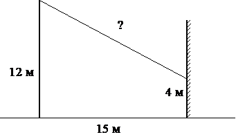 От столба высотой 12 м к дому натянут провод, который крепится на стене дома на высоте 4 м от земли (см. рисунок). Расстояние от дома до столба 15 м. Найдите длину провода. Ответ дайте в метрах.; ; ;