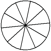| Колесо имеет 10 спиц. Найдите величину угла (в градусах), который образуют две соседние спицы. |