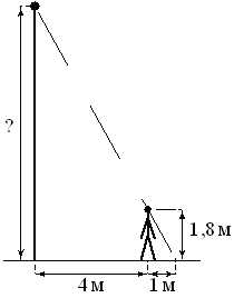 ; Человек, рост которого равен 1,8 м, стоитна расстоянии 4 м от уличного фонаря. При этом длина тени человека равна 1 м. Определите высоту фонаря (в метрах).; ; ; ; ; ; ; ;