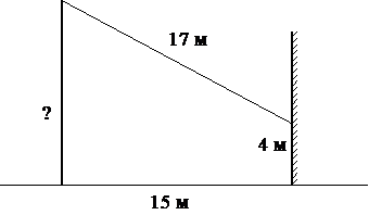 От столба к дому натянут провод длиной 17 м, который закреплён на стене дома на высоте 4 м от земли (см. рисунок). Найдите высоту столба, если расстояние от дома до столба равно 15 м. Ответ дайте в метрах.; ; ;