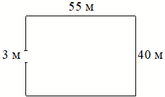 Участок земли имеет прямоугольную форму. Стороны прямоугольника равны 40 м и 55 м. Найдите длину забора (в метрах), которым нужно огородить участок, предусмотрев проезд шириной 3 м.