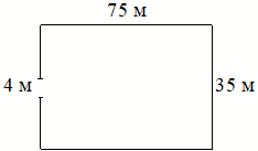 ; Участок земли имеет прямоугольную форму. Стороны прямоугольника равны 35 м и 75 м. Найдите длину забора (в метрах), которым нужно обнести участок, предусмотрев проезд шириной 4 м.