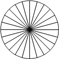 | Колесо имеет 24 спицы. Углы между соседними спицами равны. Найдите величину угла (в градусах), который образуют две соседние спицы. |