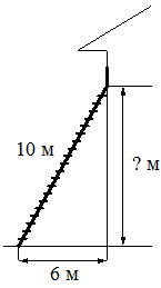 | Пожарную лестницу длиной 10 м приставили к окну дома. Нижний конец лестницы отстоит от стены на 6 м. На какой высоте находится верхний конец лестницы? Ответ дайте в метрах. |