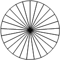 ; Колесо имеет 25 спиц.Углы между соседними спицами равны.Найдите величину угла (в градусах), который образуют две соседние спицы.;