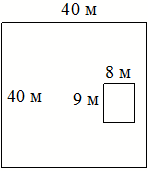; Дачный участок имеет форму квадрата, сторона которого равна 40 м. Дом, расположенный на участке, имеет на планеформу прямоугольника, стороны которого равны9 м и 8 м. Найдите площадь оставшейся части участка, не занятой домом. Ответ дайте в квадратных метрах.
