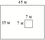 ; Дачный участок имеет форму прямоугольника, стороны которого равны 35 м и 45 м. Дом, расположенный на участке, имеет на плане форму квадрата со стороной 7 м. Найдите площадь оставшейся части участка, не занятой домом. Ответ дайте в квадратных метрах.