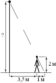 ; Человек, рост которого равен 2 м, стоитна расстоянии3,5 м от уличного фонаря. При этом длина тени человекаравна 1 м. Определите высоту фонаря (в метрах).; ; ; ; ; ; ; ;