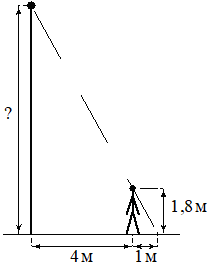 ; Человек, рост которого равен 1,8 м, стоитна расстоянии 4 м от уличного фонаря. При этом длина тени человека равна 1 м. Определите высоту фонаря (в метрах).; ; ; ; ; ; ; ;