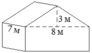 | Двускатную крышу дома, имеющего в основании прямоугольник (см. рис.), необходимо полностью покрыть рубероидом. Высота крыши равна 3 м, длины стен дома равны 7 м и 8 м. Найдите, сколько рубероида (в квадратных метрах) нужно для покрытия этой крыши, если скаты крыши равны. |