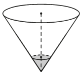 В сосуде, имеющем форму конуса, уровень жидкости достигает высоты. Объём жидкости равен 130 мл. Сколько миллилитров жидкости нужно долить, чтобы наполнить сосуд доверху?