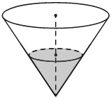 В сосуде, имеющем форму конуса, уровень жидкости достигает высоты. Объём сосуда равен 1400 мл. Найдите объём налитой жидкости. Ответ дайте