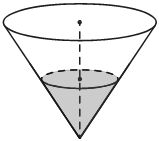 | В сосуде, имеющем форму конуса, уровень жидкости достигает высоты. Объём сосуда 120 мл. Чему равен объём налитой жидкости? Ответ дайте в миллилитрах. |