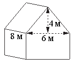 | Двускатную крышу дома, имеющего в основании прямоугольник (см. рис.), необходимо полностью покрыть рубероидом. Высота крыши равна 4 м, длины стен дома равны 6 м и 8 м. Найдите, сколько рубероида (в квадратных метрах) нужно для покрытия этой крыши, если скаты крыши равны. |