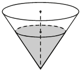 В сосуде, имеющем форму конуса, уровень жидкости достигает высоты. Объём жидкости равен 270 мл. Найдите объём сосуда. Ответ дайте в миллилитрах. |