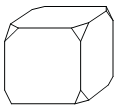 | От деревянного кубика отпилили все его вершины (см. рисунок). Сколько вершин у получившегося многогранника (невидимые рёбра на рисунке не изображены)? |