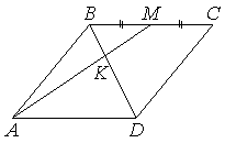 В параллелограмме > отмечена точка середина стороны |