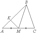 ; В треугольникеABCпроведена медианаBM,на сторонеABвзята точкаKтак, чтоAK=16AB. Площадь треугольникаAMKравна 3. Найдите площадь треугольникаABC.;