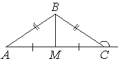 ; В равнобедренном треугольникеABCвнешний угол при основании равен150°, а медианаBM, проведённая к основанию, равна 31. Найдите боковую сторону треугольникаABC.