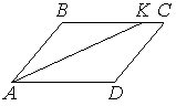 ; В параллелограммеABCDпроведена биссектриса углаA, пересекающая сторонуBCв точкеK. НайдитеKC, еслиAB=8, а периметр параллелограмма равен 40.;