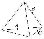 | Плоскость, проходящая через точки , и (см. рис.), разбивает тетраэдр на два многогранника. Сколько рёбер у получившегося многогранника |