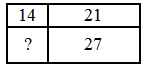 Прямоугольник разбит на четыре меньших прямоугольника двумя прямолинейными разрезами. Площади трёх из них, начиная с левого верхнего и далее по часовой стрелке, равны 14, 21 и 27. Найдите площадь четвёртого прямоугольника.