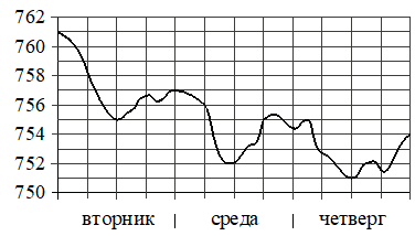 На рисунке показано изменение атмосферного давления в течение трёх суток. По горизонтали указаны дни недели, по вертикали значения атмосферного давления в миллиметрах ртутного столба.