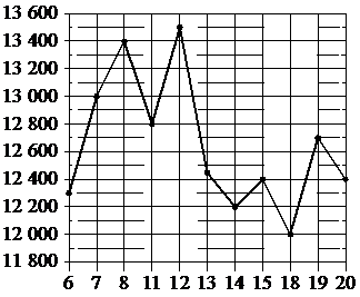 На рисунке жирными точками показана цена никеля на момент закрытия биржевых торгов во все рабочие дни с 6 по 20 мая 2009 года. По горизонтали указаны числа месяца, по вертикали цена никеля в долларах США