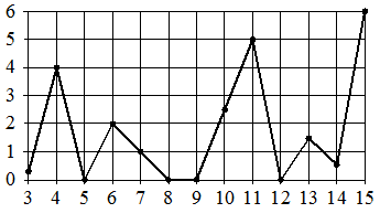 На рисунке жирными точками показано суточное количество осадков, выпадавших в Казани с 3 по 15 февраля 1909 года. По горизонтали указываются числа месяца, по вертикали—количество осадков, выпавших в соответствующий день, в миллиметрах. Для наглядности жирные точкина рисунке соединены линиями.; ; ; ; Определите по рисунку, какого числа в Казани выпало наибольшее количество осадков за данный период.;
