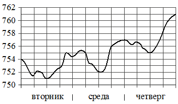На рисунке показано изменение атмосферного давления в течение трёх суток. По горизонтали указаны дни недели, по вертикали значения атмосферного давления в миллиметрах ртутного столба.