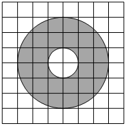 ; На клетчатой бумаге нарисованы два круга. Площадь внутреннего круга равна 8. Найдите площадь заштрихованной фигуры.; ; ; ;