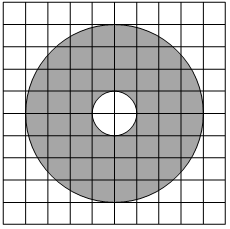 ; На клетчатой бумаге нарисованы два круга. Площадь внутреннего круга равна 40. Найдите площадь заштрихованной фигуры.; ; ; ; ; ;