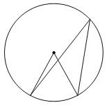 | Центральный угол на больше острого вписанного угла, опирающегося на ту же дугу окружности. Найдите величину вписанного угла. Ответ дайте в градусах. |