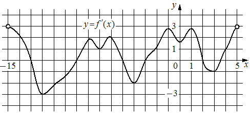 На рисунке изображён графикy=f'(x)—производной функцииf(x), определённой на интервале(−15;5). Найдите количество точек максимума функцииf(x), принадлежащих отрезку[−11;4].;