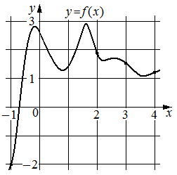 На рисунке изображён график функцииy=f(x). На оси абсцисс отмечены точки−1, 2, 3, 4. В какой из этих точек значение производной наибольшее?В ответе укажите эту точку.;