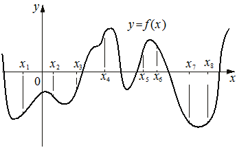 На рисунке изображён график функцииy=f(x). На оси абсцисс отмечено восемь точек:x1,x2,x3,x4,x5,x6,x7,x8.В ответе укажите количество точек (из отмеченных), в которых производная функцииf(x)положительна.;