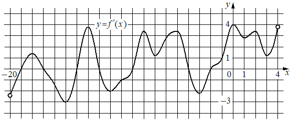 На рисунке изображён графикy=f'(x)—производной функцииf(x),определённой на интервале(−20;4).Найдите количество точек экстремума функцииf(x),принадлежащих отрезку[−16;1].;