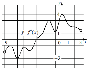На рисунке изображён графикy=f'(x)—производной функцииf(x), определённой на интервале(−9;3). В какой точке отрезка[−7;−5]функцияf(x)принимает наибольшее значение?;