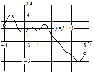 На рисунке изображён графикy=f'x— производной функцииfx,определённой на интервале−4;8.В какой точке отрезка−2;3функцияfxпринимает наибольшее значение?;