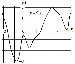 На рисунке изображён график функцииy=f(x). На оси абсцисс отмечены точки−2, 1, 3, 4. В какой из этих точек значение производнойфункцииf(x)наибольшее? В ответе укажите эту точку.; ;