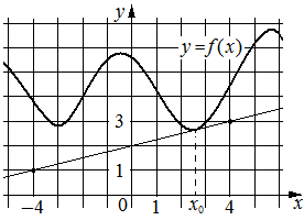 На рисунке изображены график функцииy=fxи касательная к немув точке с абсциссойx0.Найдите значение производной функцииfxв точкеx0.; ;