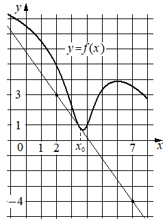 На рисунке изображены график функцииy=f(x)и касательная к немув точке с абсциссойx0.Найдите значение производной функцииf(x)в точкеx0.;